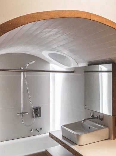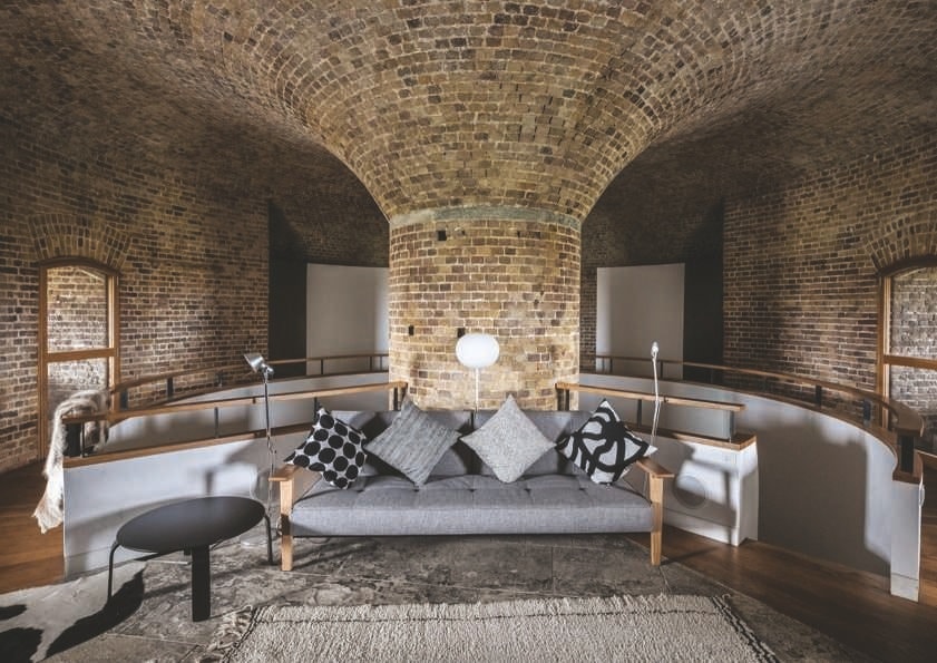 Overlooking the sea wall and standing proud on the horizon, Martello Tower Y is now a wholly unique living space. The outside of the tower appears stark and windowless and remains imposing, forbidding even. But inside it’s a different story as the meticulous, delightful renovation unfolds.