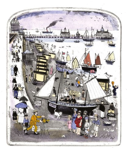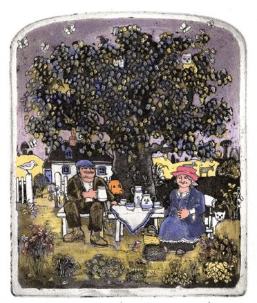 Graham’s pictures depict his love of the Kent countryside, boats and the sea, Cornwall, travel to Europe and beyond, comic misinterpretations of history, Shakespeare and much more besides. He sold his first work to a neighbour at the age of eight and at this point his career as an artist began. He set about celebrating the beauty of rural life and went on to learn the process of copperplate etching. His work won him recognition from the foremost art patron of the day, Sir Kenneth Clark. In 1973 he came to public attention when ‘Dance by the Light of the Moon’ featured in the Royal Academy’s Summer Exhibition. His work is now held in many collections and museums but what pleases him most is that it is enjoyed on the walls of homes all over the world. The most frequent comment being, ‘We’ve had this on our wall for years and we still keep finding something new to enjoy’.