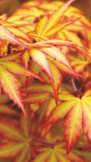 As summer fades and the flowers dwindle, the vibrant hues of autumn leaves give us one last burst of colour before winter, and one tree wins hands down when it comes to intensity and variety of autumn colour – the Acer. This one is Acer Palmatum ‘Sango-Kaku’ which turns canary yellow with orange highlights in autumn.
