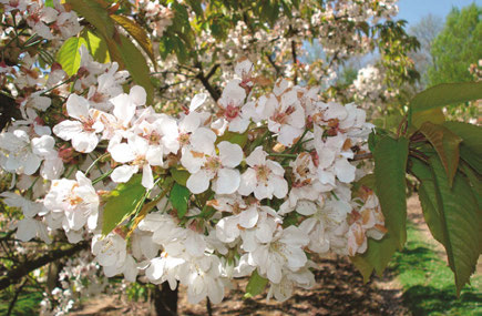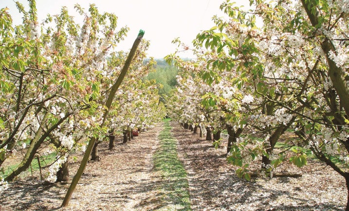 Movement of these essential pieces of any cherry grower’s equipment took careful planning and considerable manpower, and the risk to pickers of falling was the stuff of today’s health and safety officers’ nightmares! Modern cherry varieties are grown on dwarfing root stocks, such as Gisela 5 or Colt, and their height is further limited to ensure maximum fruit production and ease of harvesting, sometimes by pruning out the growing shoot or by tying branches down to encourage strong lateral growth (where the fruits will form). This sort of orchard management is labour intensive, and it can take five years to create a well-shaped and productive tree, but trees managed in this way are far more economical of space and nutrition and, ultimately, they produce more usable fruit.
