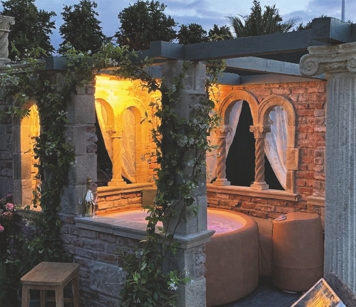 Surrounding your hot tub with stonework could make it look like an 18th century folly, or even a Roman spa! (OK, so your house isn’t that old, but considering the Victorians’ love of Antiquity, it’s still entirely relevant).