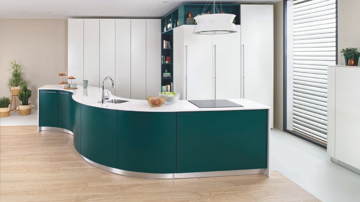Opt for a statement extractor, piece of lighting or bright cabinetry in a contrasting or dramatic colour to create a focal point in your kitchen.