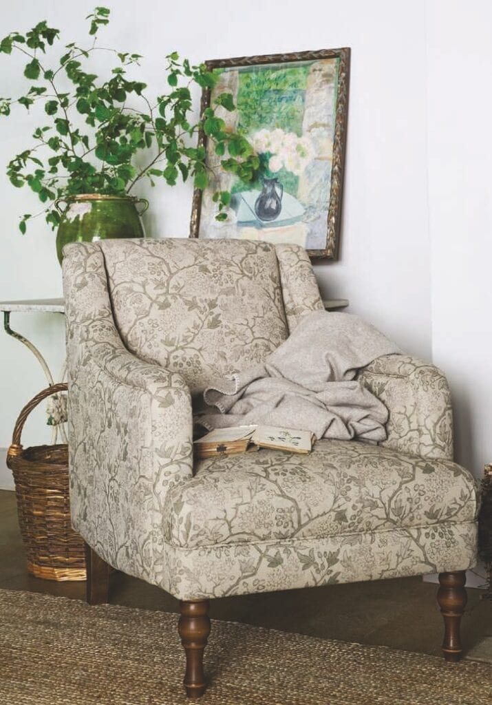 The final fabric features a design from one of Britain’s best-known horticulturalists and garden designers, Gertrude Jekyll (1843 – 1932). An enchanting original sketch by Jekyll of a floral and leafy spray has been reproduced and repeated, creating a tumbling design across the fabric which feels both fresh and timelessly romantic.