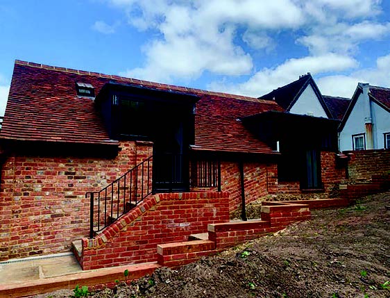 On the outside there were extensive works to be sensitively carried out as well, including major groundworks to retain the rear ragstone elevation. The roofs were strengthened throughout, and the existing slate and Kent Peg tiles were removed and re-laid, re-using most of the original tiles. This respect to the existing old building was echoed throughout the works, including the careful rebuild of an external ragstone and brickwork wall to match what was there. The before and after photos show the huge extent of the works that were needed and indeed carried out in order for the Carriage House to be useable once again; it is an excellent example of a sensitive conservation project on a listed building.