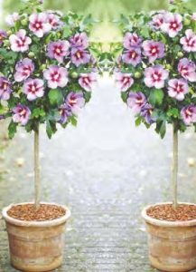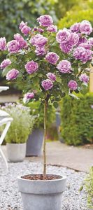 One of the most popular standard plants is the rose. It is created by budding three shrubs on a stem; hence the dramatic effect. English roses, with their natural, bushy growth and beautiful, fragrant flowers, are the finest roses for growing as standards.