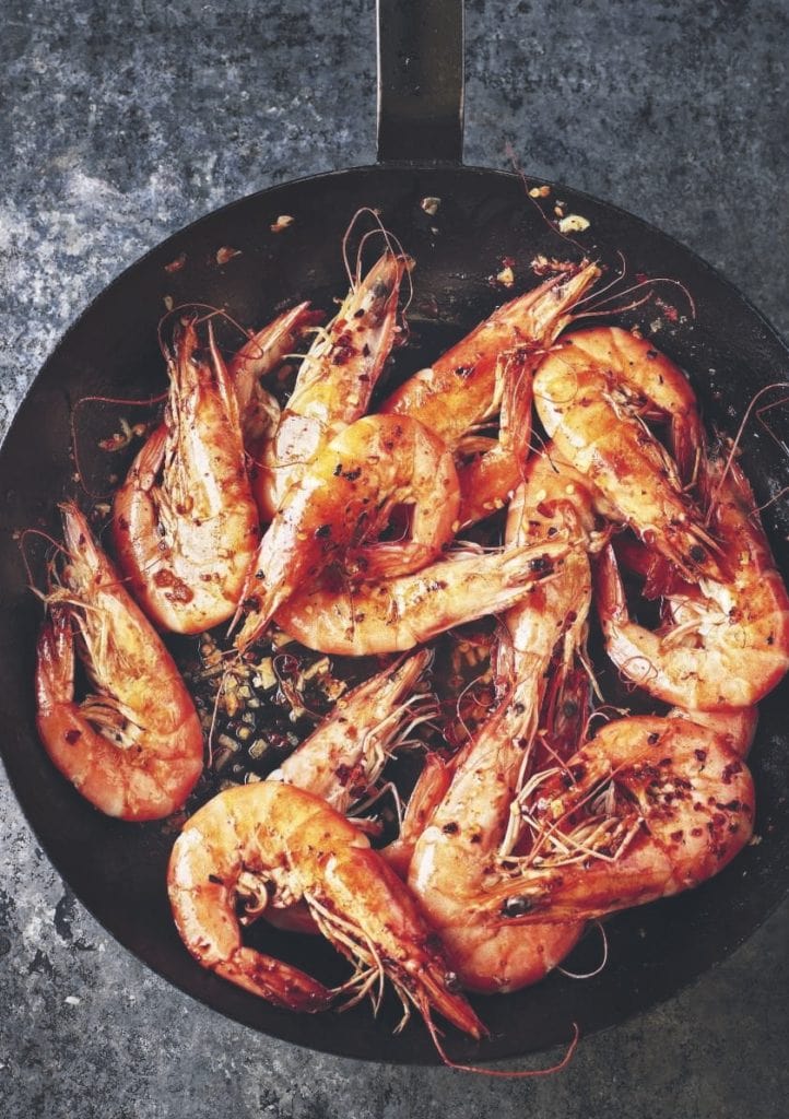 “I can remember watching my dad make this recipe, and being fascinated by the grey prawns turning pink as they cooked. They tasted so good that I even sucked the juices from the heads. It’s a messy dish to eat – you will have napkins covered in pink once you have finished – but so worth it.” Anna