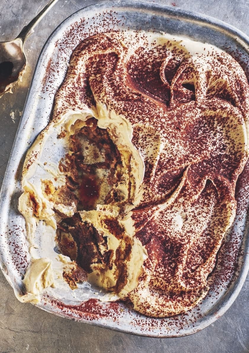 “Traditional tiramisu contains raw eggs, but I avoid them in my recipe below. The dessert is made with sponge fingers soaked in coffee and Marsala that are layered with rich and airy mascarpone cream. Very yummy!” Anna