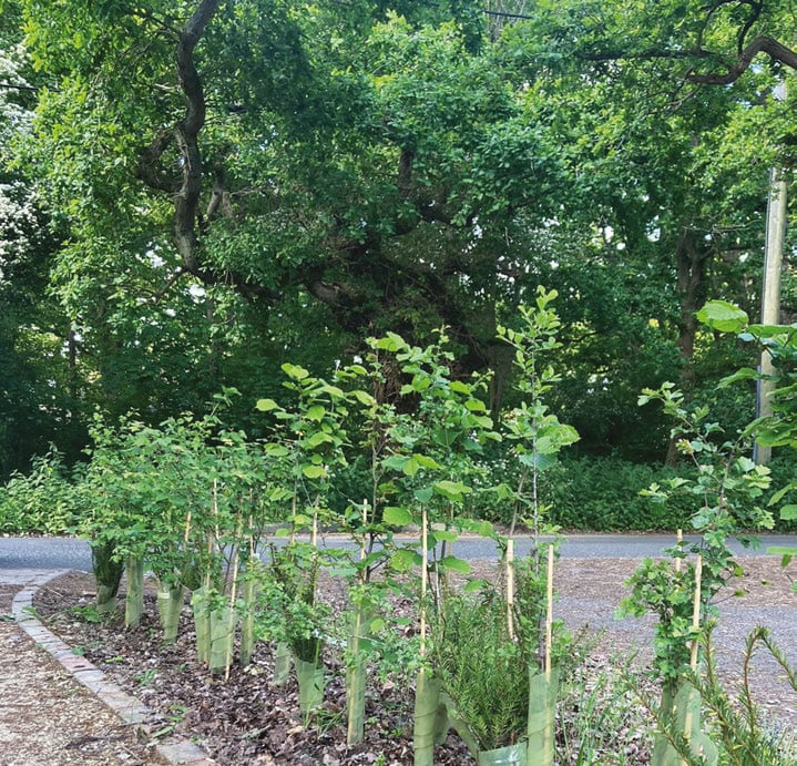 After two or three years, add climbers to sprawl about like wild honeysuckle or clematis (these will reduce the vigour of the hedge if planted when the hedge is just establishing).