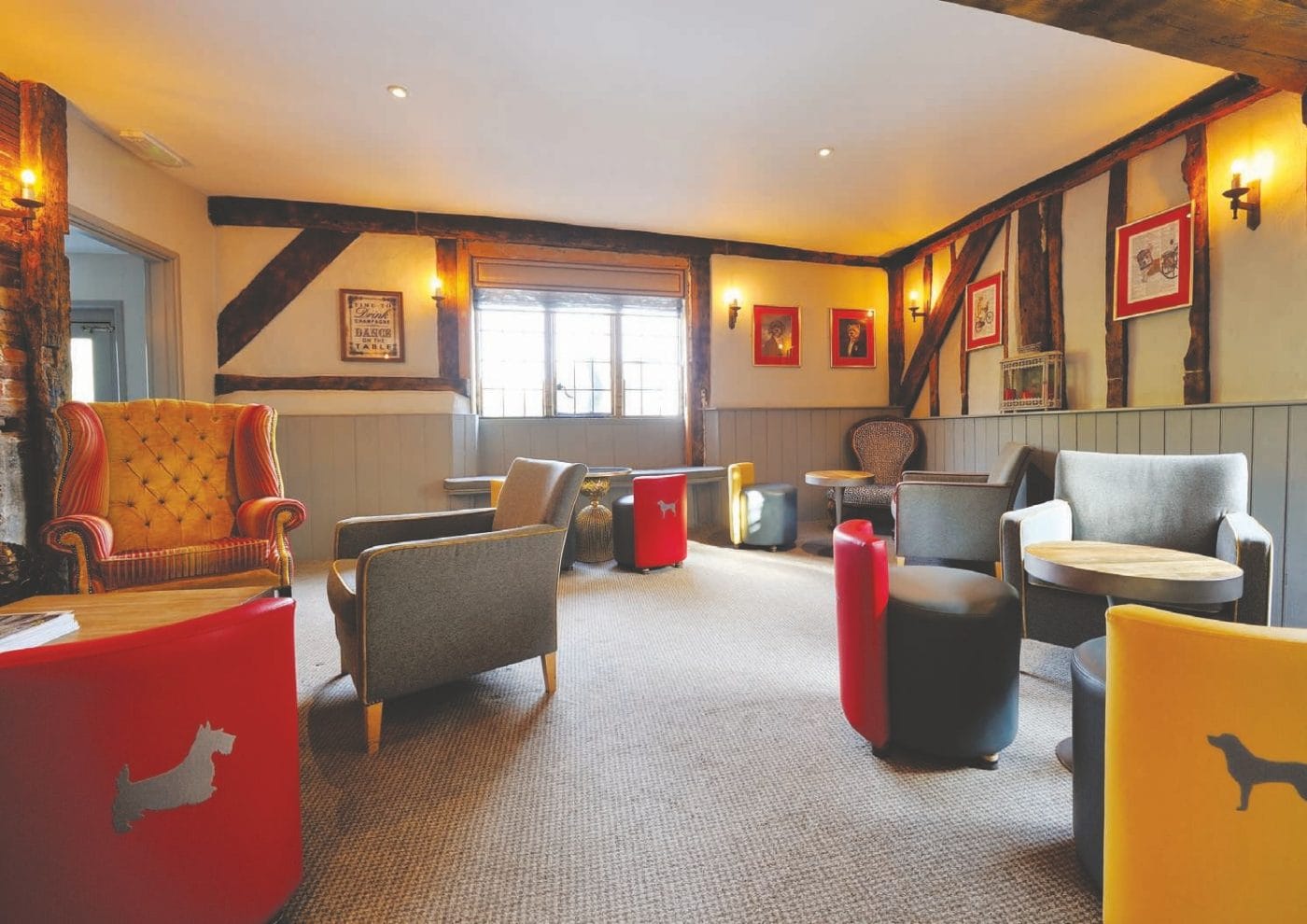 The Dog at Wingham’s slogan is understated and beautifully simple: Drink. Eat. Sleep. And there is a classy simplicity that is inherent in the décor. The soft greys and heritage colours, exposed brickwork and timbers, with just the right amount of warm red accents and quirky canine references work wonderfully amongst the oak beams and cosy fireplaces. The effect is instantly welcoming, relaxing and luxurious.