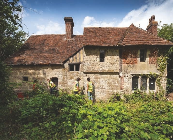 When the Society for the Protection of Ancient Buildings (SPAB) bought the building in November 2018 it was hidden behind an overgrown garden; vandal damage had left the site vulnerable; and parts of the roof were leaking. They are working with Historic England and others to bring the building back to life. Known as their ‘Old House Project,’ SPAB’s aim is to showcase the very best conservation methods and materials to repair this medieval building. Over the summer, there was a working party held at Boxley Abbey and a lime kiln was set up in the grounds of St Andrew’s for the production of ‘hot lime’.