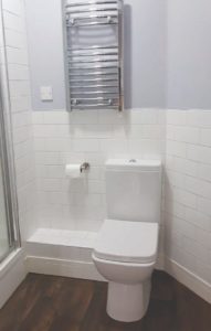 As there was an existing WC downstairs, it made sense to convert this into a shower room, as originally intended. The ground floor has underfloor heating so this also limited being able to move the pipework, which meant limited plumbing and electrical works would be required, keeping costs down significantly. A smaller short projection toilet and sink were installed to really maximise the space. For contrast, we specified metro tiles and complementary contrasting paint to enhance the room.