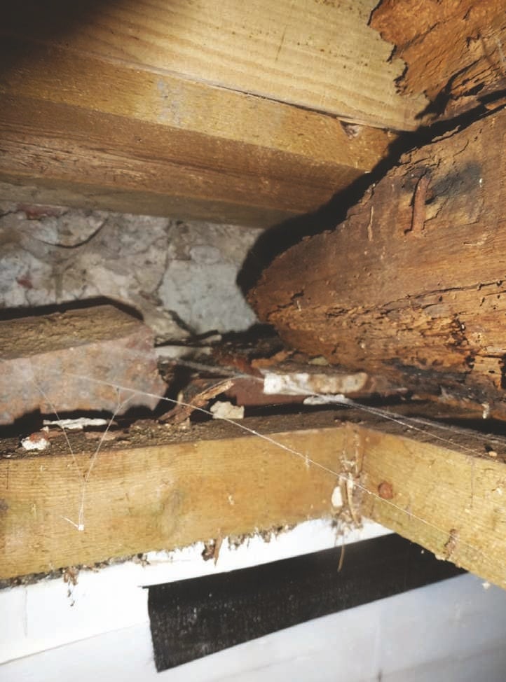 It was found that moisture build-up in the roof void had accelerated the decay of some timbers and caused advanced nail rot in the lathe fixings. To keep as much of the historic fabric as possible, new ‘partner’ repairs were fixed, supplementing an old decayed timber with a new one to take the structural load.