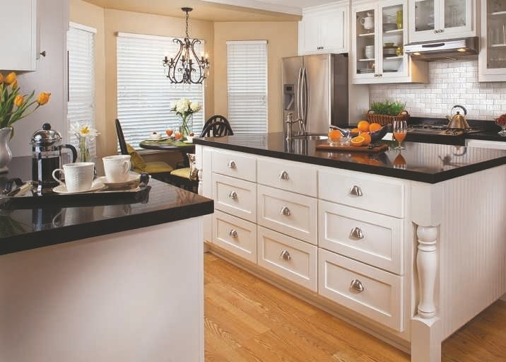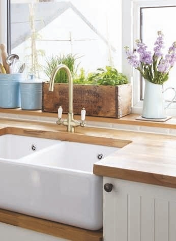 For traditional kitchens, go for the look and feel of natural stone worktops, choosing either Italian granite or ultra-contemporary recycled glass. Black or white surfaces, some with mirror fleck, give an upscale look and check out the latest porcelain worktops too. Waterfall ends, right down to floor level, look elegant and stylish.