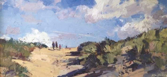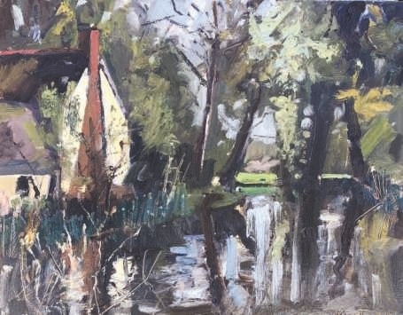 There’s an interesting twist in this tale that takes us back to the beginning of the story and Karl’s love of art. In 2005 he was called by Chris Daynes to do some roofing work on his house. Chris was Karl’s art teacher at school. Whilst work progressed on Chris’s roof he encouraged Karl to try painting again, which he did. He started painting en plein air, which translates as ‘in the open air’. It’s a practice that was favoured by the French Impressionists like Monet, Pissarro and Cezanne, who wanted to paint the effects of light and its changing ephemeral qualities in landscapes or cityscapes in all weathers.