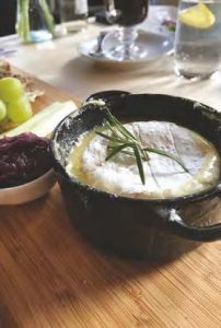 In the warmer months The Dove offers an al-fresco daily menu, with all food cooked to order using locally sourced ingredients including herbs and eggs and from their own garden and the chickens which roam outside.