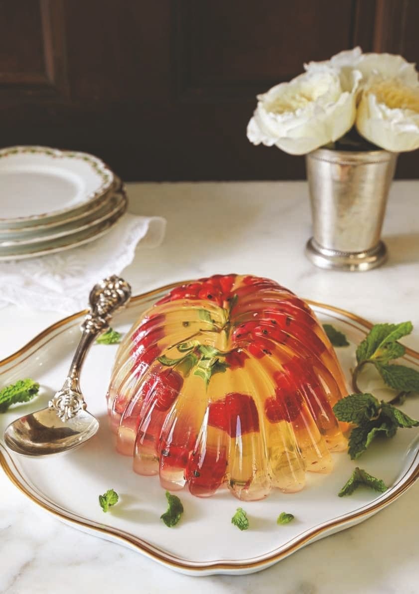 If serving the jelly without embellishments, pour all of the gelatin mixture into the mould. Cover the filled mold and refrigerate until fully set, at least 8 hours or up to 1 day. (If the time of day is right, you can sip the remaining Champagne.)