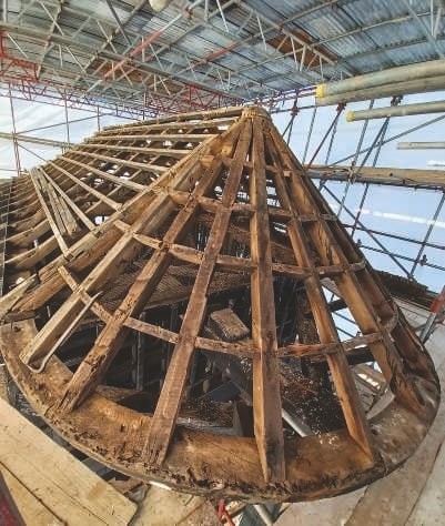The current job list for Kent firm Dolmen Conservation & Joinery ranges from the sublime to the prosaic: while some staff are working up in the roofs of Canterbury Cathedral almost among the angels, others have a more down-to-earth task restoring a rare treadwheel crane which was powered by mere mortals.