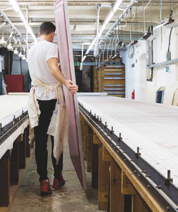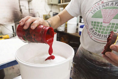 The company’s expert colour mixers blend various pure pigments with binders to match any given sample by eye, thus enabling infinite colour combinations. Only harmless water-based pigments are used in the print colours, to protect the local environment.