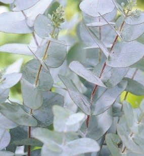 The silvery-blue foliage of eucalyptus