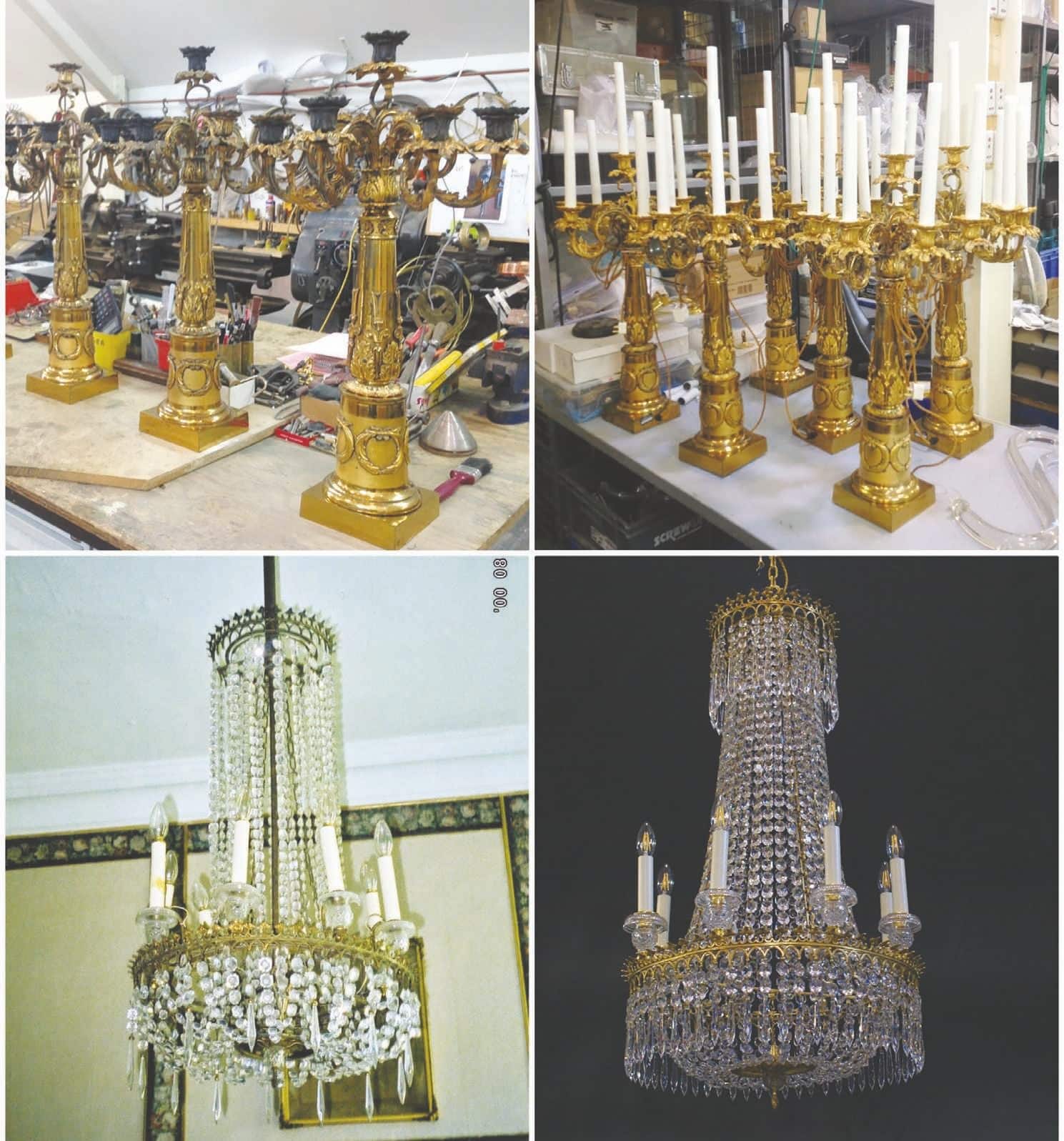 - Fitting new lampholders, deep cleaning, minor repairs and repinning broken and fragile metal pins.