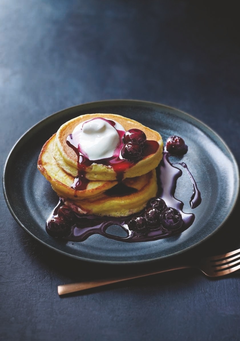 Lemon & Ricotta Hotcakes with Blueberry Syrup